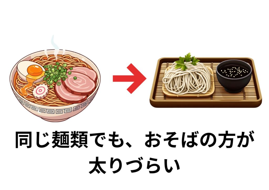 同じ麺でも、ラーメンよりおそばの方がGI値(血糖値の上がりやすさ)が低いので、